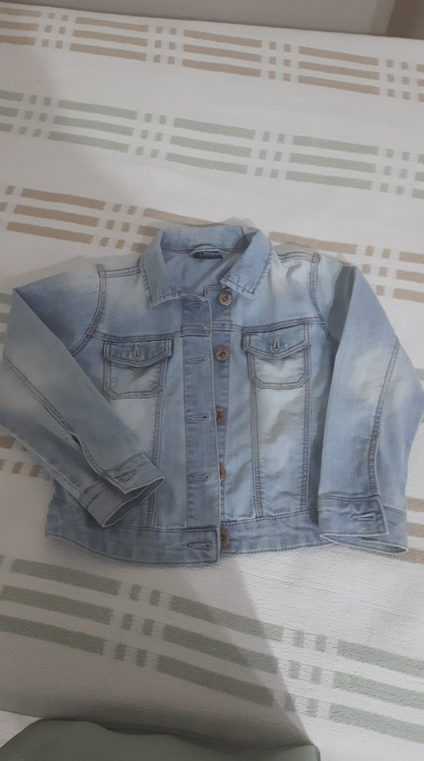 Düğmeli Mavi kız cocuk Kot Ceket