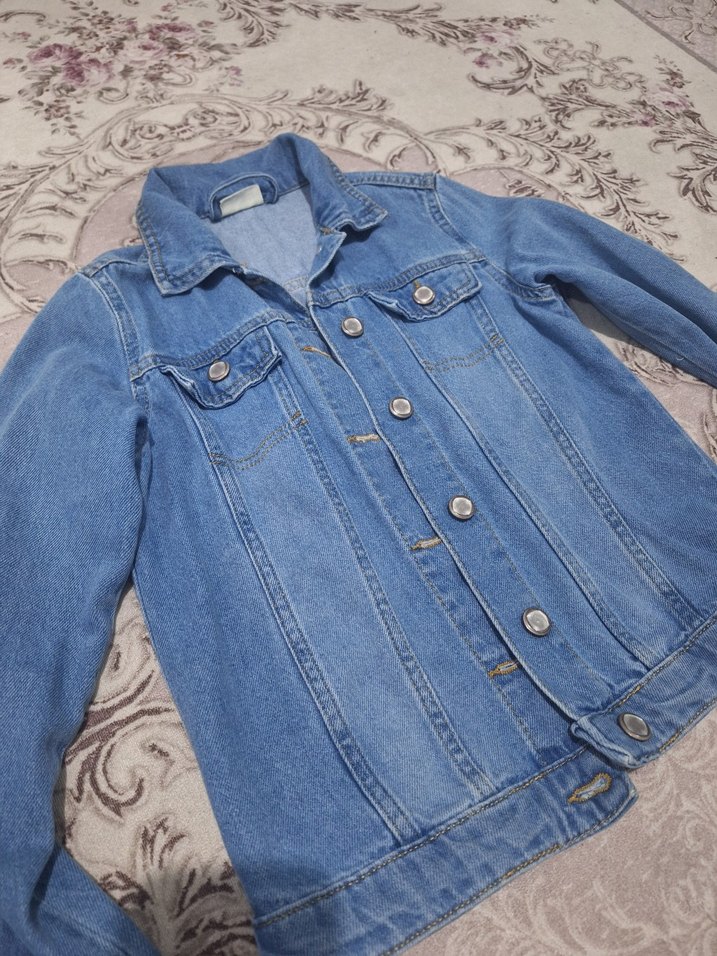 Düğmeli Mavi kız çocuk Kot Ceket