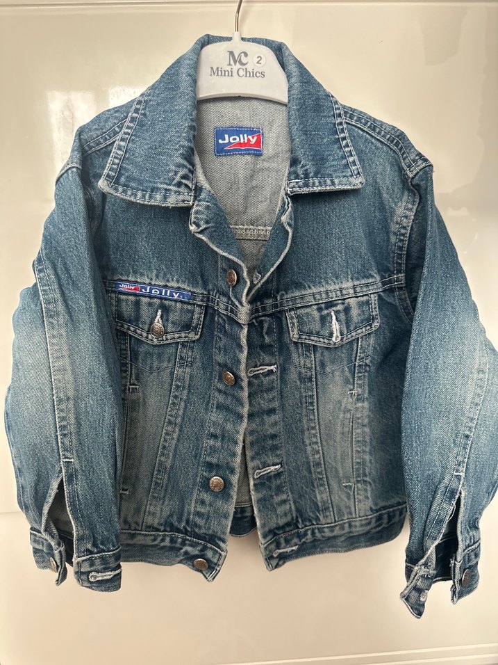 Düğmeli, kesimli mavi kot kız ceketi, notlu yakasıyla sokak modasına uygun şık bir görünüme sahiptir. Jolly ve Mini Chics markalıdır.