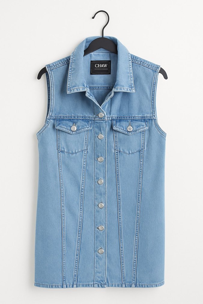 Düğmeli Mavi Kolsuz Denim Ceket-elbise