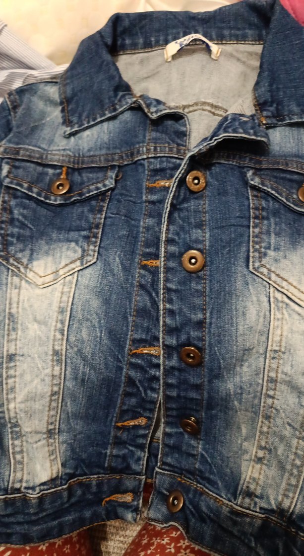 Düğmeli, çentikli yakalı, parlak mavi kot ceket. İnce kesimi ve askılı kollarıyla gündelik sokak stili için uygundur.