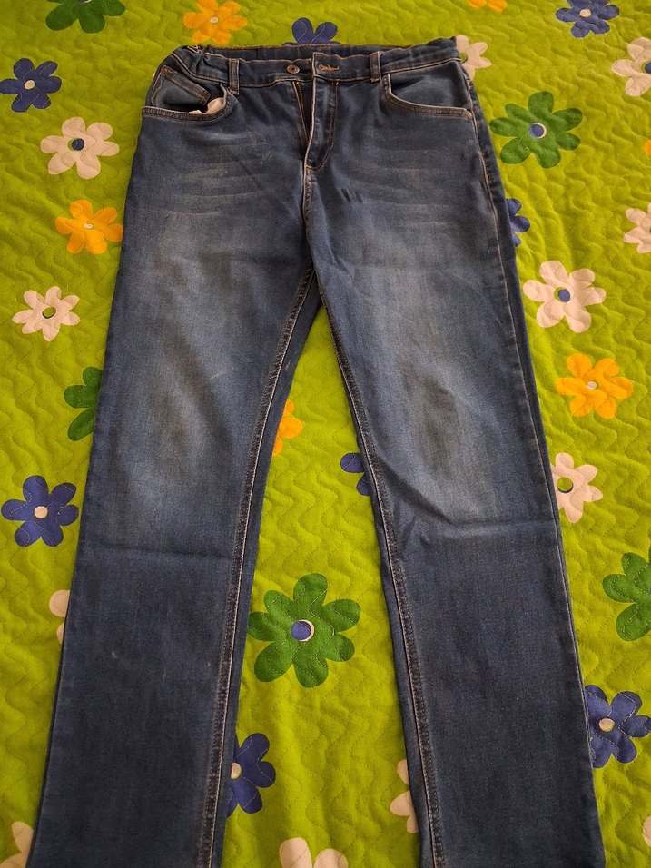 Düğmeli Mavi Kot Pantolon