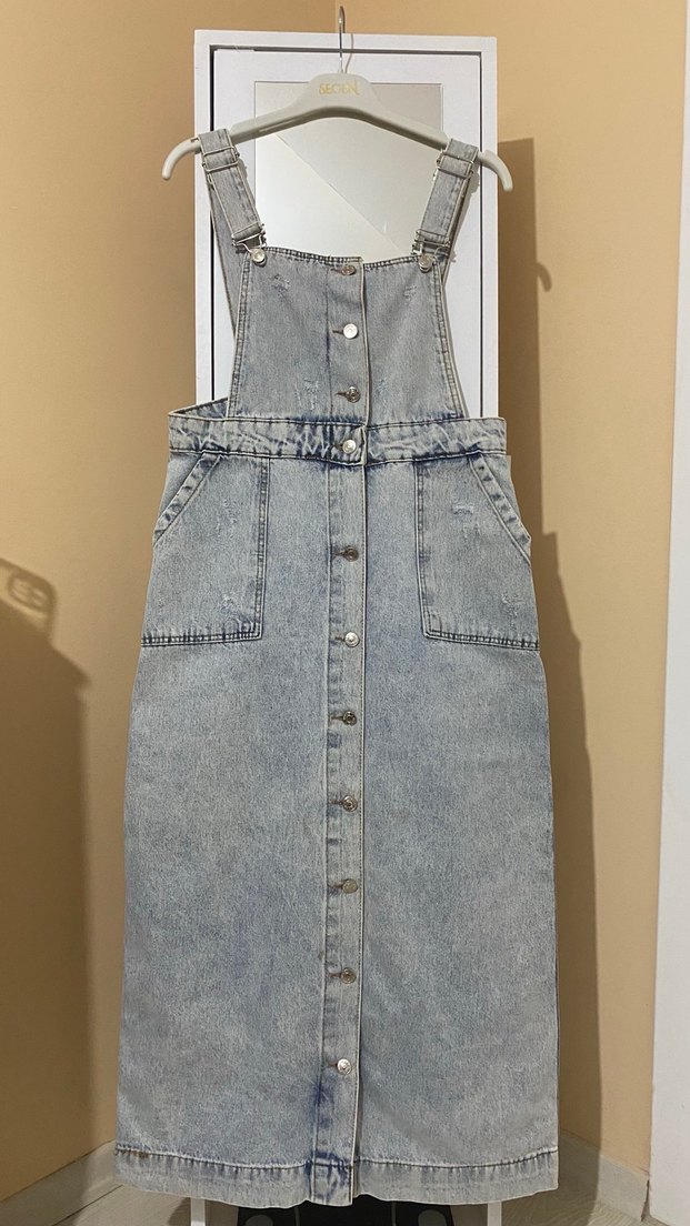 Düğmeli Mavi Kot Salopet, tulum