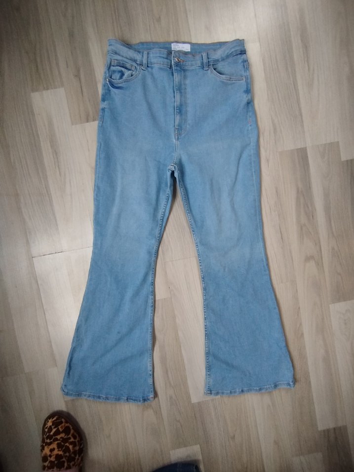 Düğmeli ön kısmı ve midi boyu ile bol kesim mavi kot pantolon, günlük rahat kullanım için uygundur. Desensiz ve pastel tonlardadır.