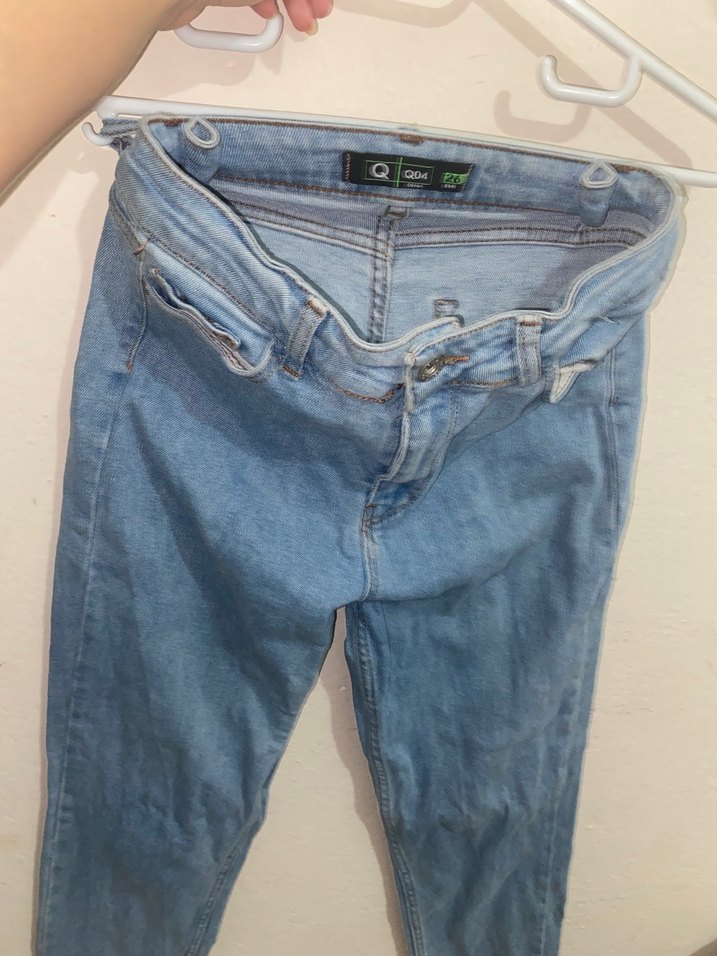 Düğmeli, mavi renkte, midi boy, dar kesim kadın kot pantolon. Günlük kullanıma uygun rahat ve şık bir seçenek.