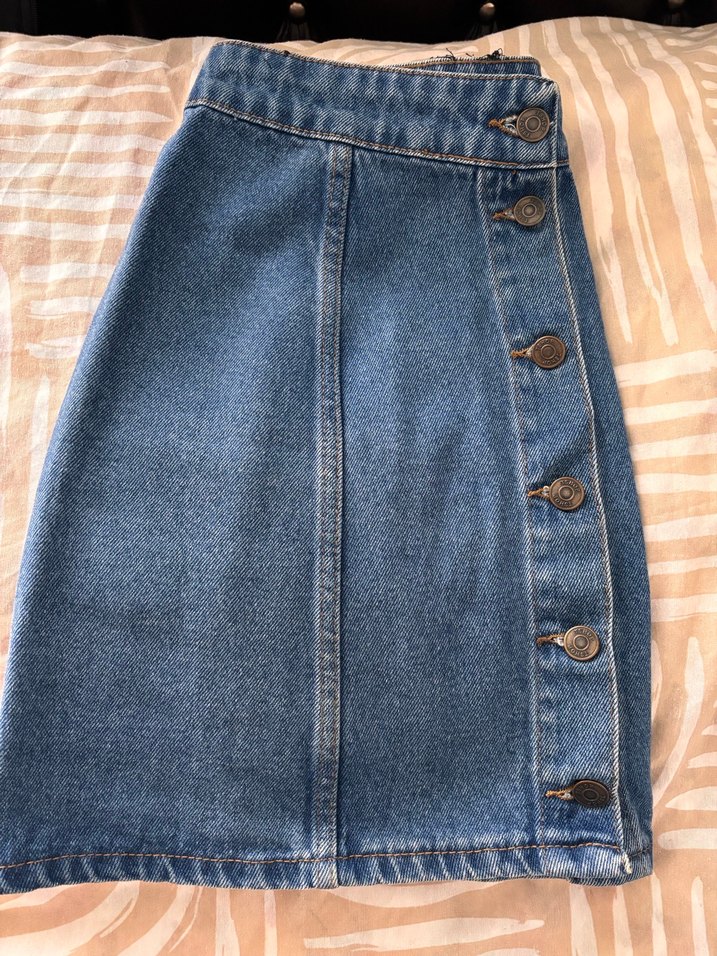 Düğmeli Mavi Midi Denim Etek