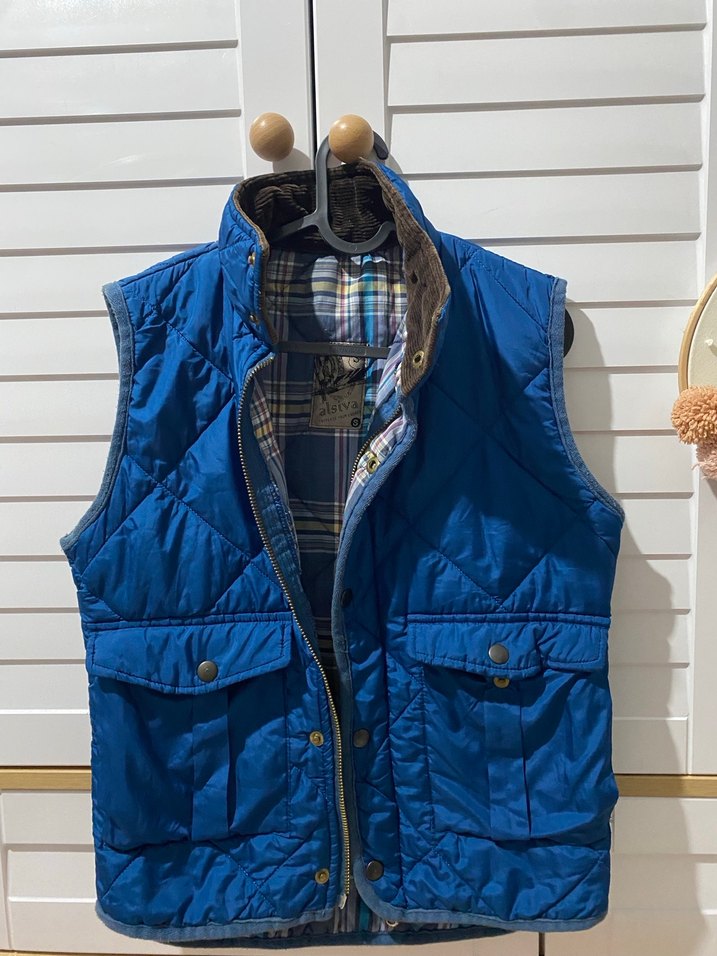 Parlak mavi renkte, düğmeli ve yakalı, midi boyda erkek yelek. Rahat kesimli, cep detaylı ve yumuşak iç astarlı, günlük sokak stili için uygundur.