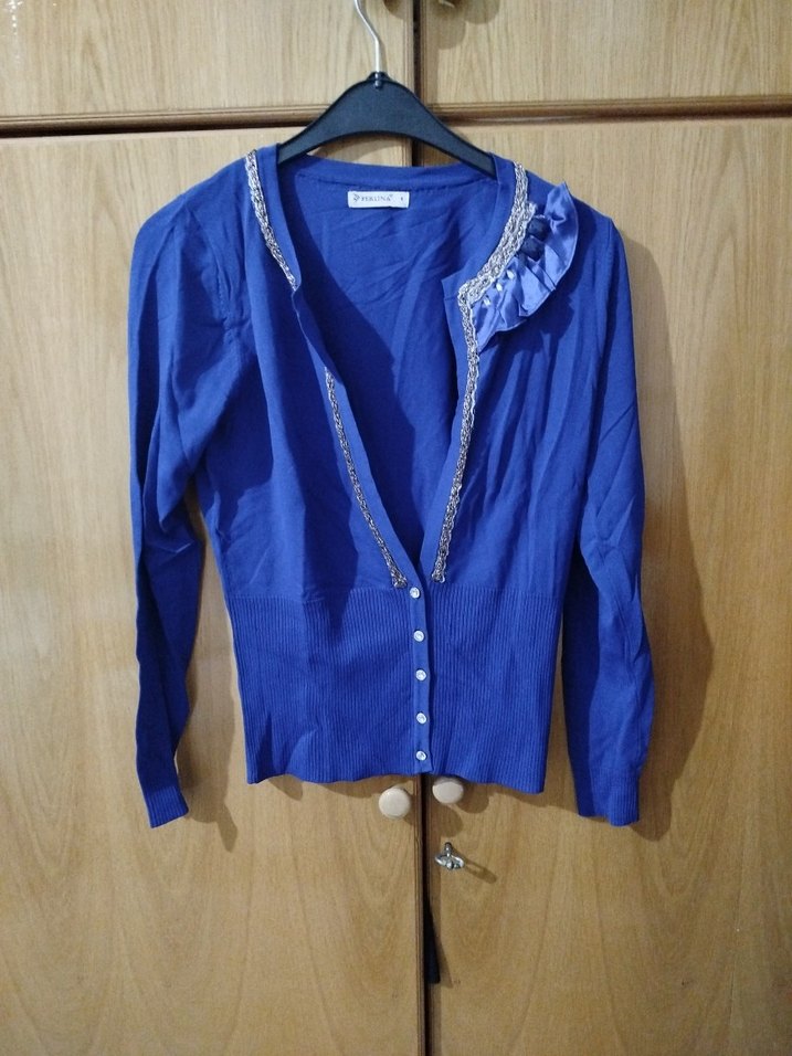 mavi triko hırka, yakalı ve düğmeli tasarıma sahiptir. Uzun kollu ve dar kesimli, günlük rahat sokak giyimi için uygundur. ✨
