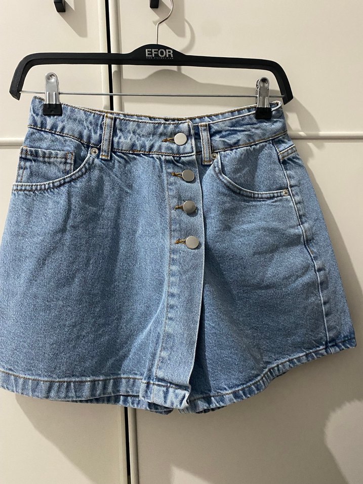 Düğmeli Mavi Mini Denim Şort