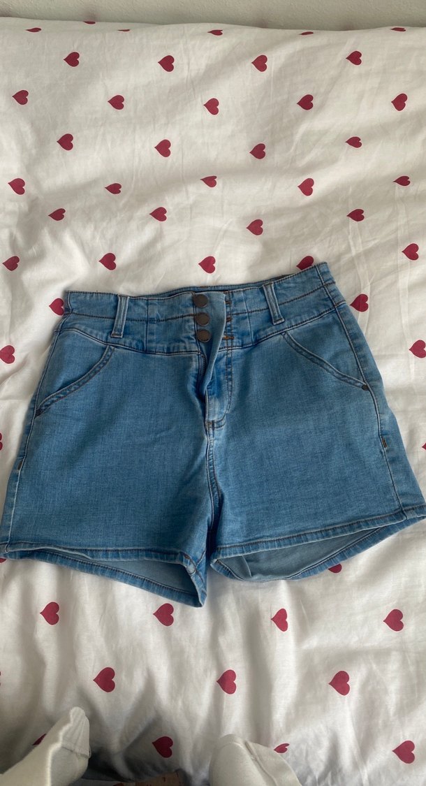 Düğmeli Mavi Mini Denim Şort