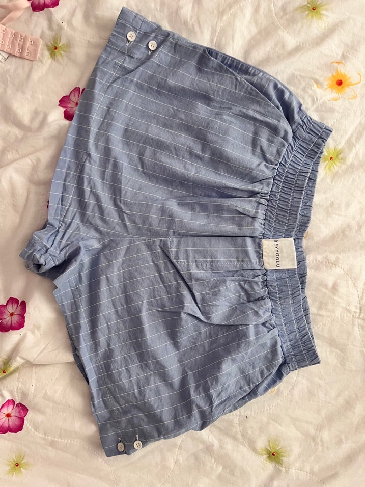 Düğmeli Mavi Mini Hamile Şortu