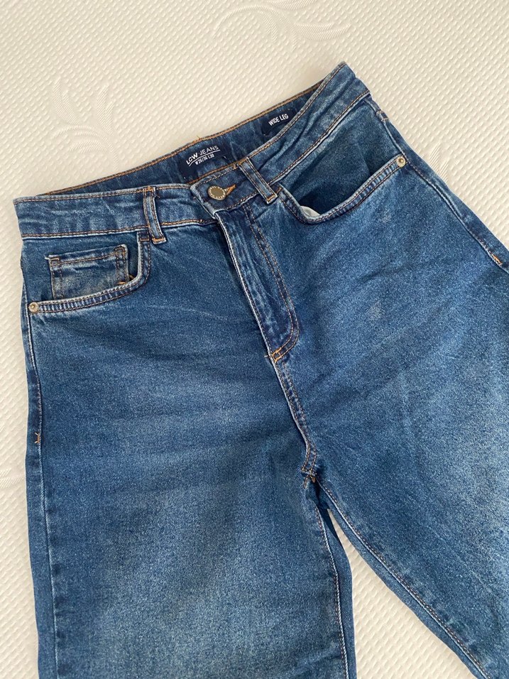 Düğmeli, normal kesim, midi boy mavi kot pantolon, günlük rahat kullanım için uygundur. Desensiz sade tasarıma sahiptir.