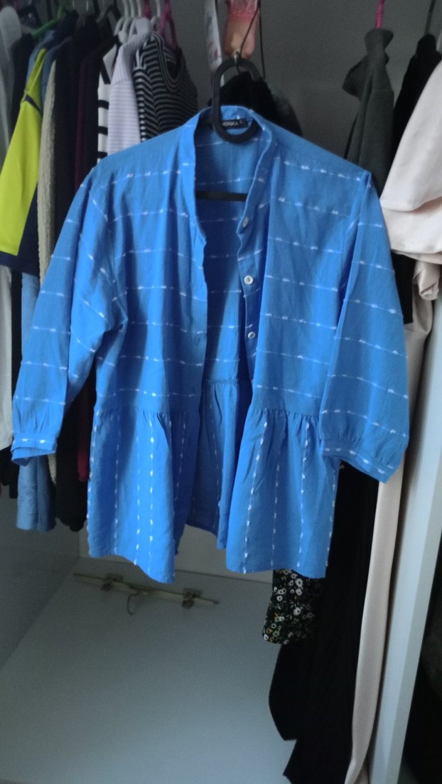 Düğmeli Mavi Pamuklu Uzun Kollu Kadın Gömlek