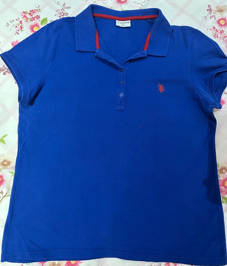 Pamuk kumaştan yapılmış, düğmeli yakalı ve kısa kollu, parlak mavi renkte polo tişört. Sade tasarımıyla sokak stiline uygundur.