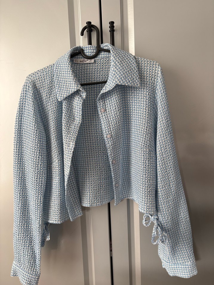 Düğmeli Mavi Pötikareli Kadın Gömlek