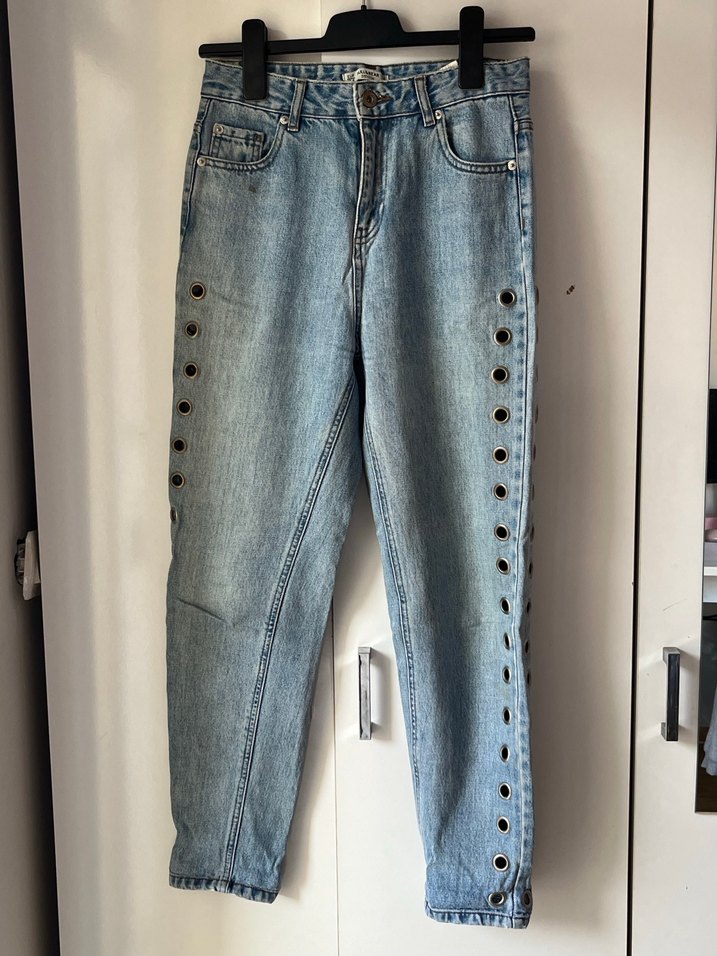 Düğmeli Mavi Rahat Kesim Kadın Kot Pantolon