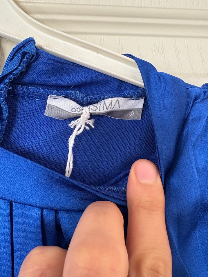 Düğmeli, uzun kollu, V yakalı ve işlemeli detaylara sahip saten hamile bluzu. Parlak ve yumuşak kumaştan, günlük rahat giyim için uygun.