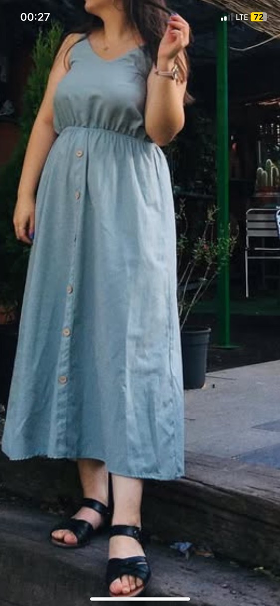 Düğmeli, bol kesim, pastel mavi uzun hamile kot etek, günlük rahat kullanıma uygundur.