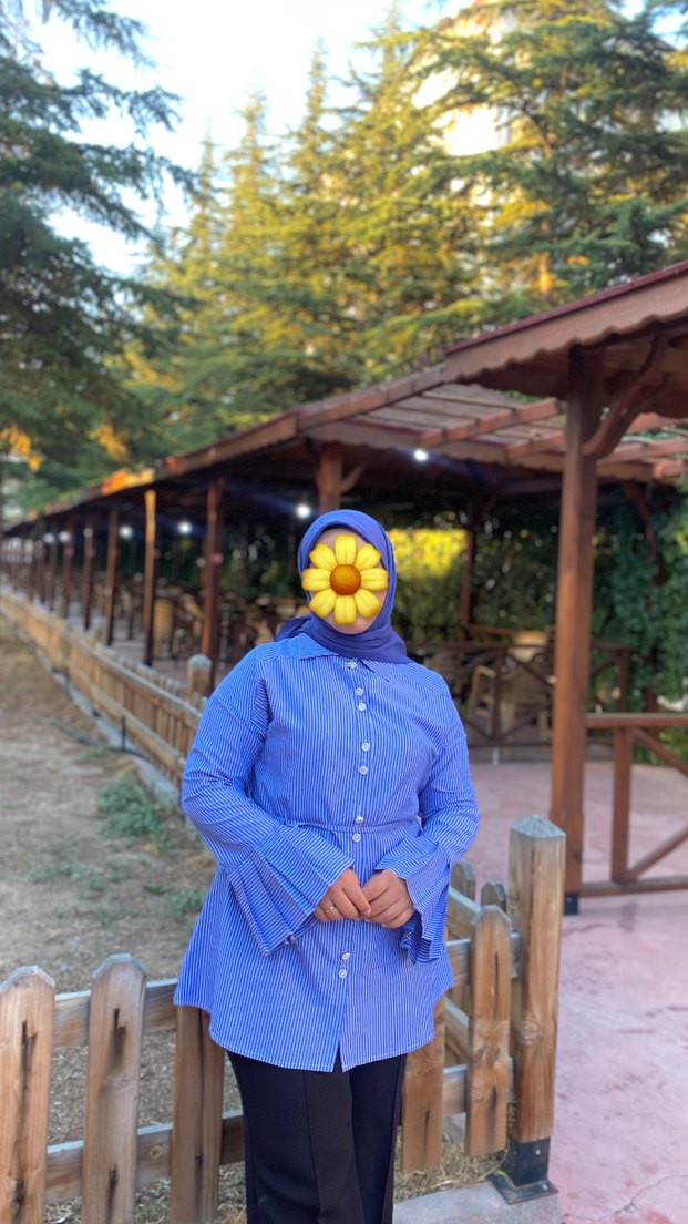 Düğmeli Mavi Uzun Kollu Salaş Gömlek