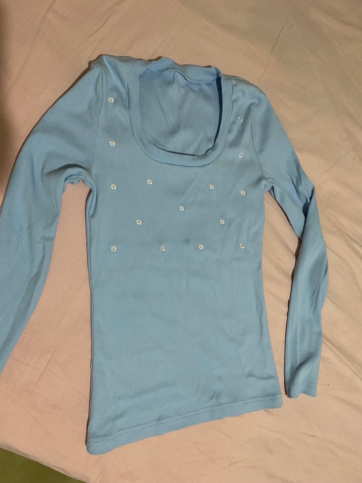 Düğmeli Mavi Uzun Kollu Tişört