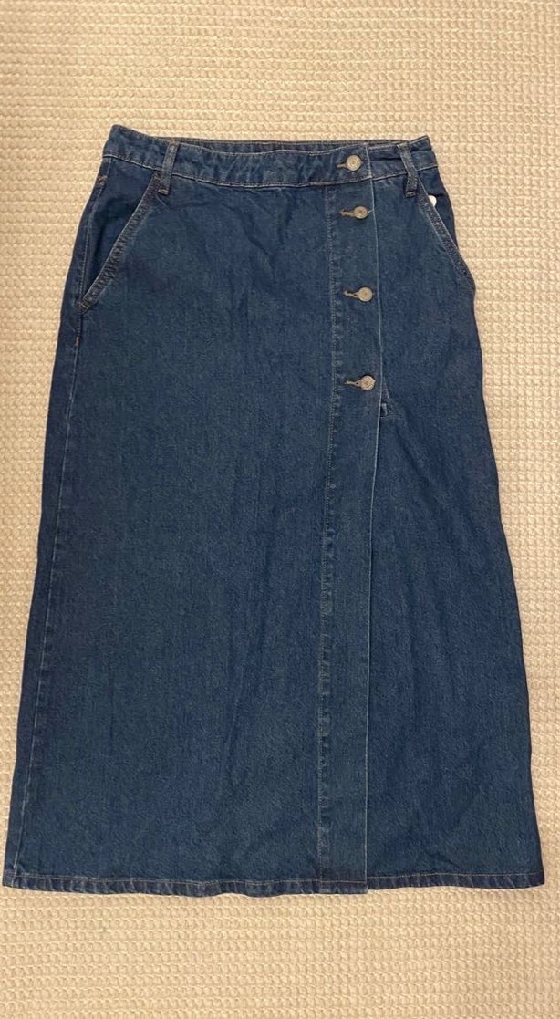 Düğmeli Mavi Uzun Kot Etek