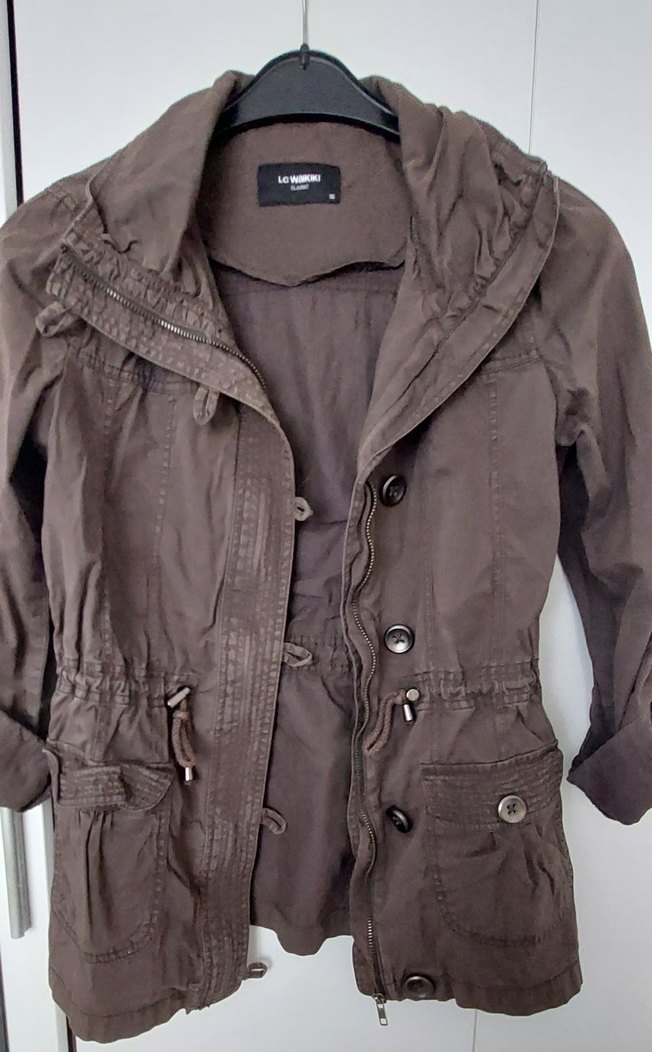 Düğmeli, Midi Boy, Bol Kesim haki Kadın Ceket