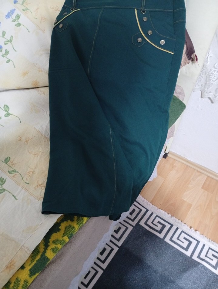 Düğmeli ve midi boyda, koyu yeşil renkte, sentetik kumaştan üretilmiş, günlük sokak stili için uygun, vücuda oturan hamile eteği.