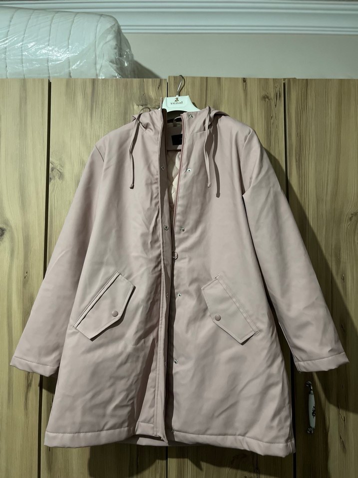Bej renkli, midi uzunlukta kadın ceketi, düğmeli ve yakalıdır. Yumuşak sentetik kumaştan yapılmış, bol kesim ve uzun kolludur, günlük sokak tarzına uygundur. Bir kere giyildi bir hafta önce alındı