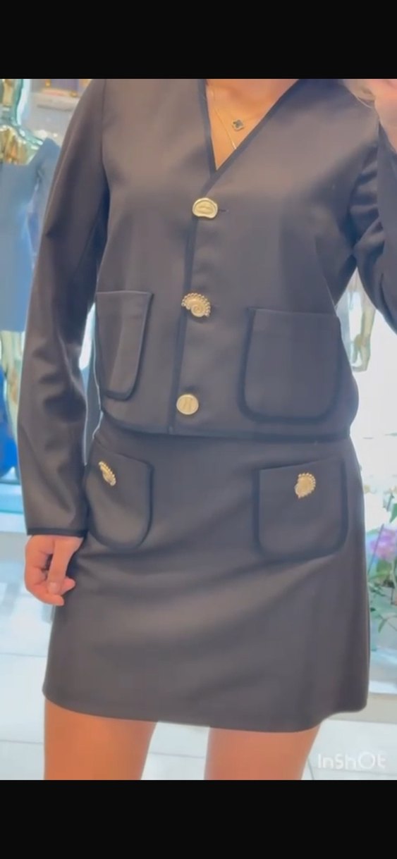 Haki renkli kadın ceketine etek takım , düğmeli ve kapaklı ceplerle midi boyda, çok güzel kaliteli ve şık Uzun kollu ve klasik şıklık için uygundur. 36 beden yeni ürün