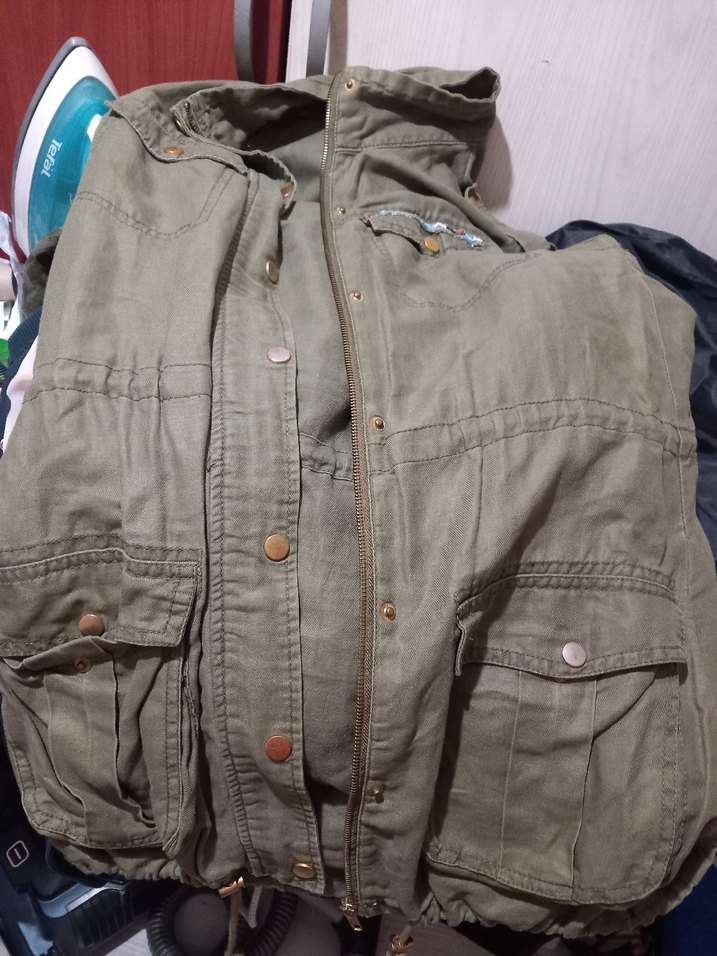 Düğmeli, uzun kollu, keten kumaştan midi boy bol kesim kadın ceket. Günlük kullanıma uygun, sade ve rahat sokak stili.