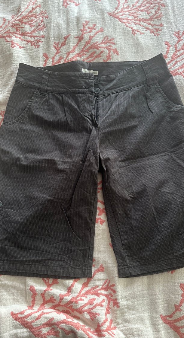 Kahve çizgili renkte, düğmeli, keten kumaştan, bol kesim ve normal midi boyda kadın pantolon. Rahat sokak stiline uygundur. Düğmelerle boyu kısaltılabilir.
