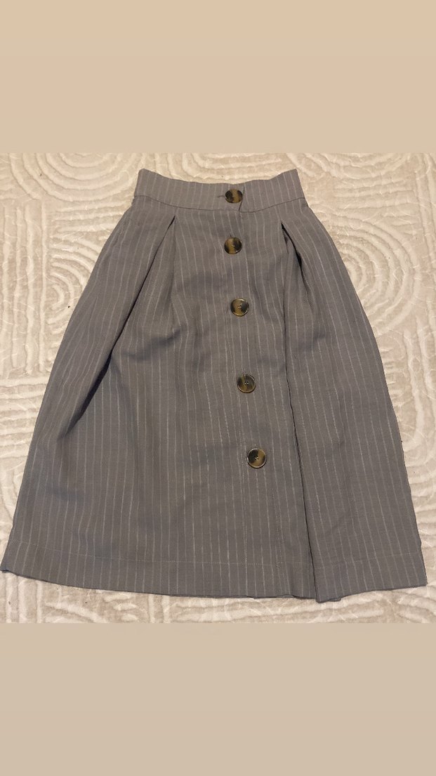 Düğmeli Midi Keten Etek