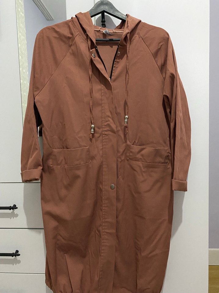 Pembe renkli, düğmeli midi yağmurluk, bol kesim, uzun kollu ve çentikli yaka detaylarına sahiptir. Sentetik kumaştan üretilmiş, günlük sokak stiline uygundur. ☔