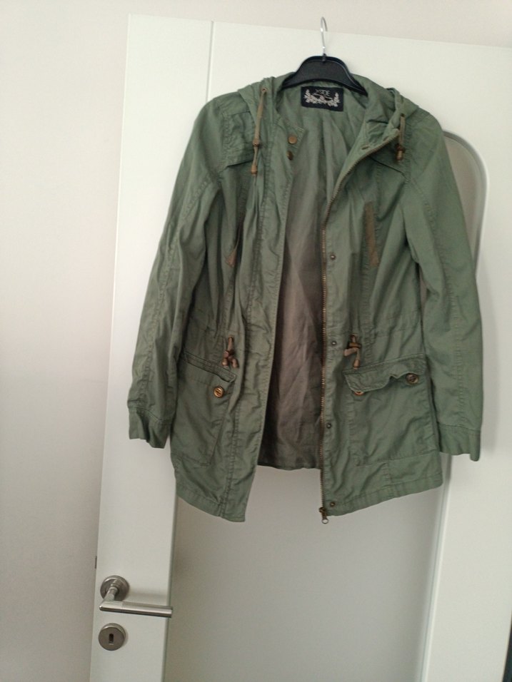 Düğmeli, uzun kollu, yeşil midi ceket. Keten kumaştan, rahat kesim ve notlu yaka detaylı, günlük kullanıma uygun.iki koltuk altından göğüs ölçüsü mezro ile 46 cm boyu 70 cm