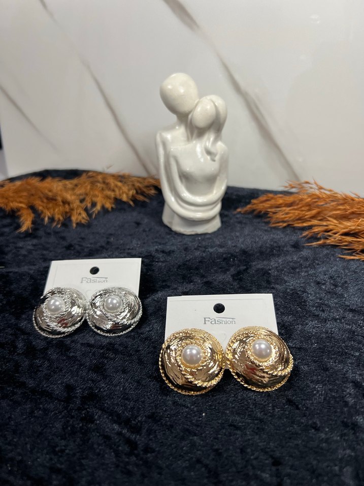 Düğmeli, parlak altın renginde ve işleme detaylı kısa uzunlukta küpeler. Ortasında klasik inci detayı bulunur, düğünler için uygundur. Adet fiyatıdır.