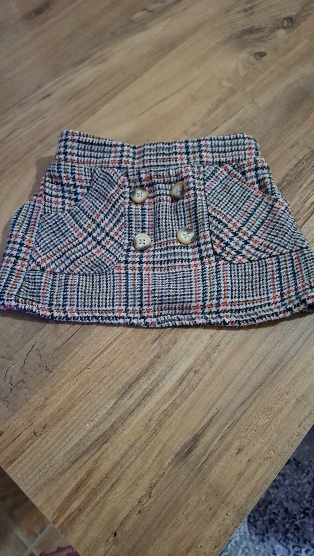 Düğmeli mini etek, rahat kesim ve önünde düğme detaylarıyla. Sentetik kumaştan, gri ve kahverengi kareli desende, sokak stiline uygun rahat bir tasarım. Günlük kullanım için uygundur.
