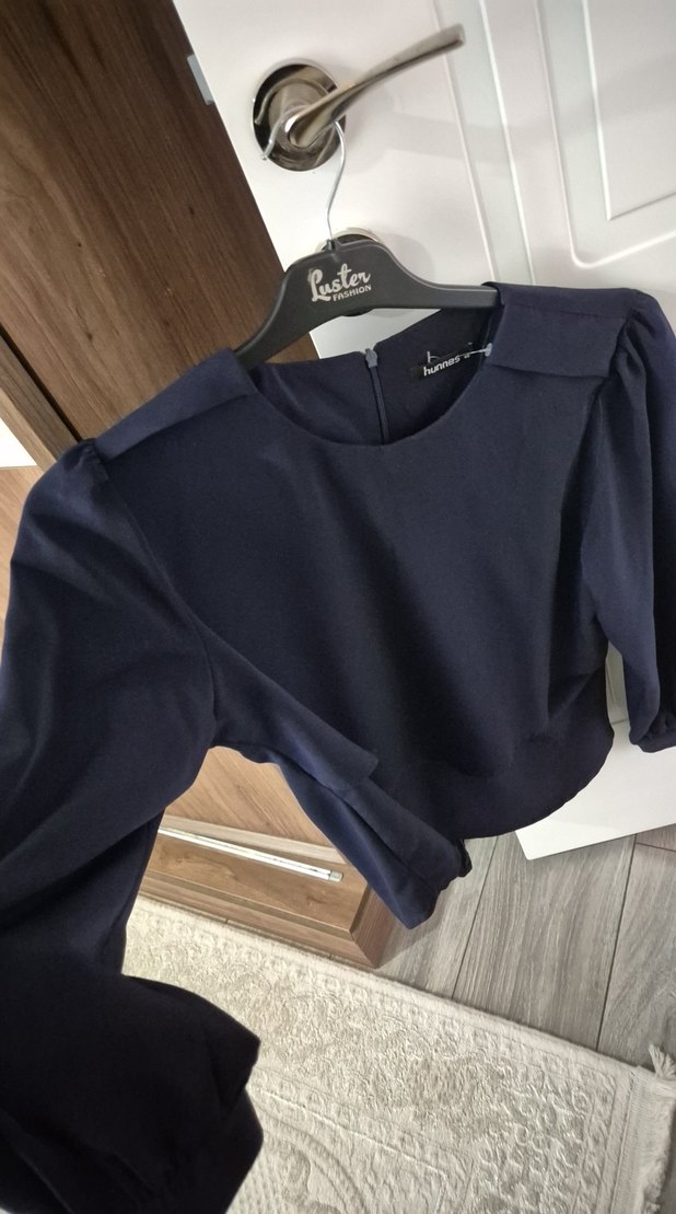 Düğmeli Mini Koyu larcıverti Kadın Bluz