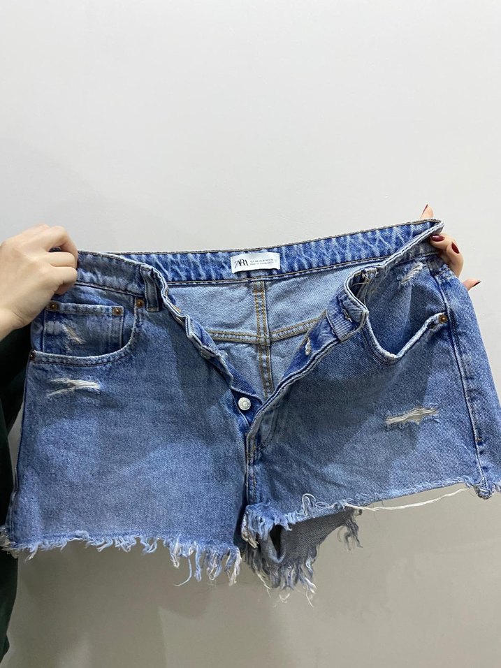 Düğmeli ön kısmı ve kısa mini boyu ile bol kesim kadın kot şort. Hafif yıpranmış görünümlü, desen içermeyen mavi-gri renkte, günlük kullanım için uygun.