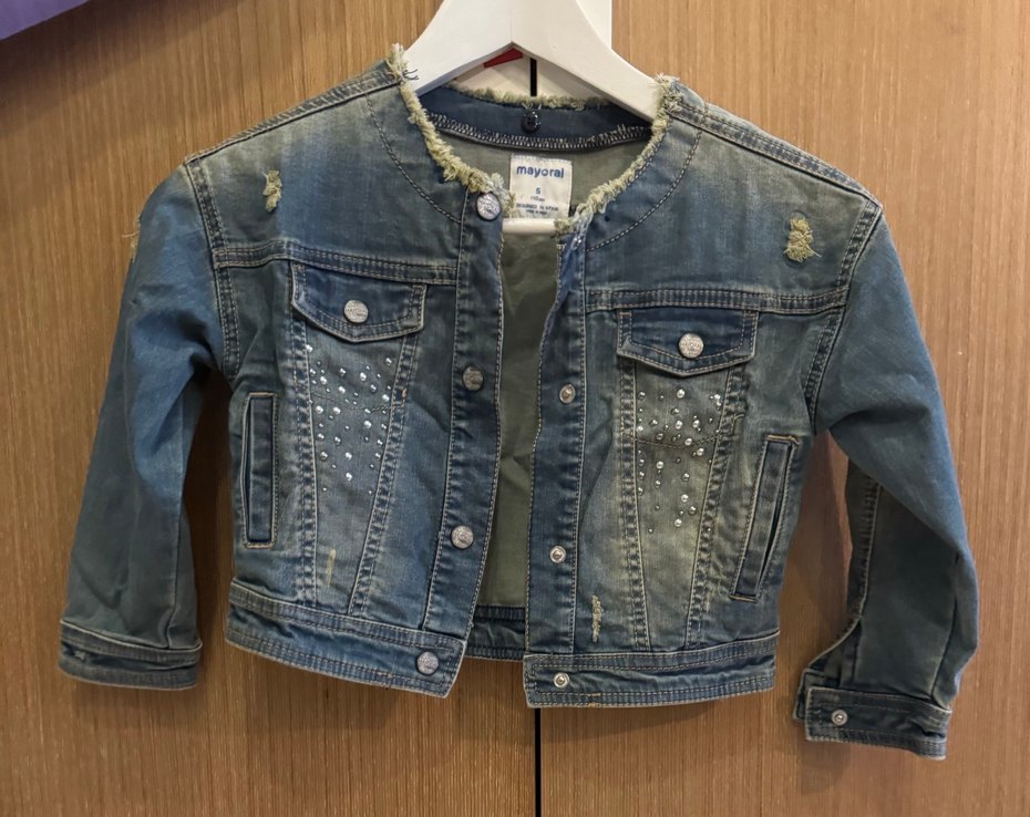 Düğmeli, kolsuz ve kısa kesim mavi kot yelek. İşlemeli detaylar ve parlak görünümle günlük sokak stiline uygun.