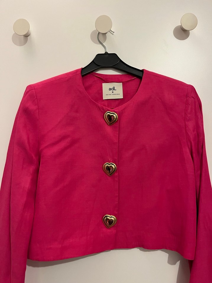 Düğmeli Mini Pembe Kadın Ceket ADL
