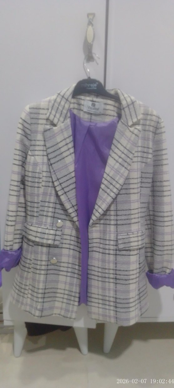 Düğmeli Mor Astarlı Kadın Blazer Ceket