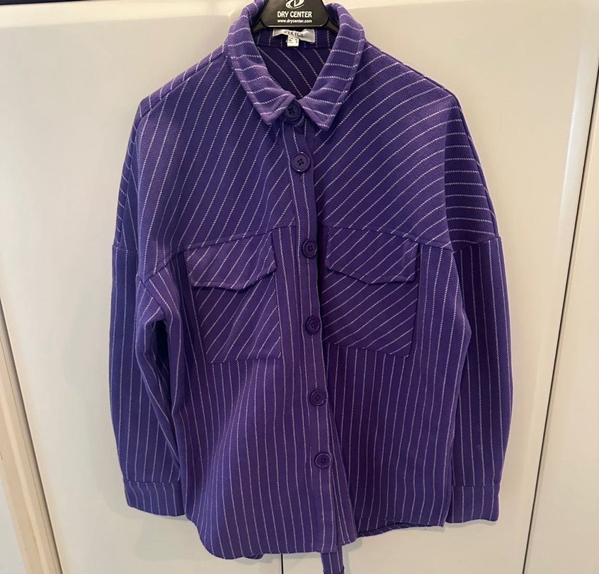 Düğmeli Mor Çizgili Kadın Dış Gömlek
