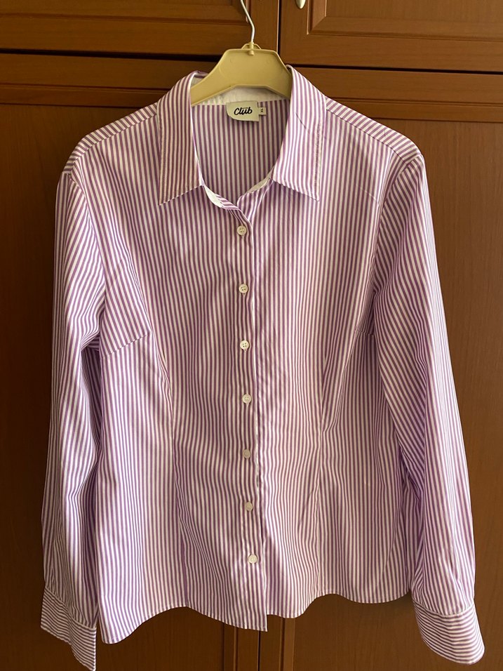 Düğmeli Mor Çizgili Kadın Gömlek