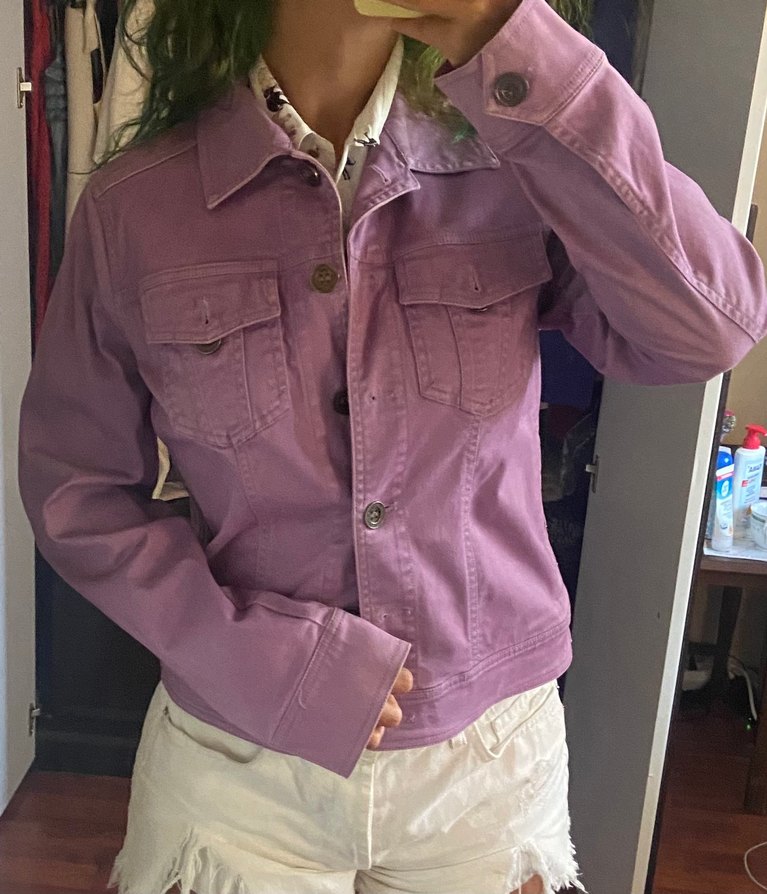 Düğmeli Mor Denim Ceket