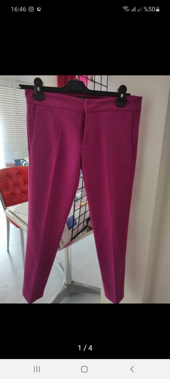 Düğmeli Mor Kadın Kumaş Pantolon