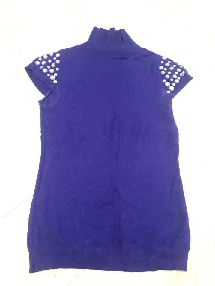 Düğmeli Mor Kolsuz Boğazlı Triko
