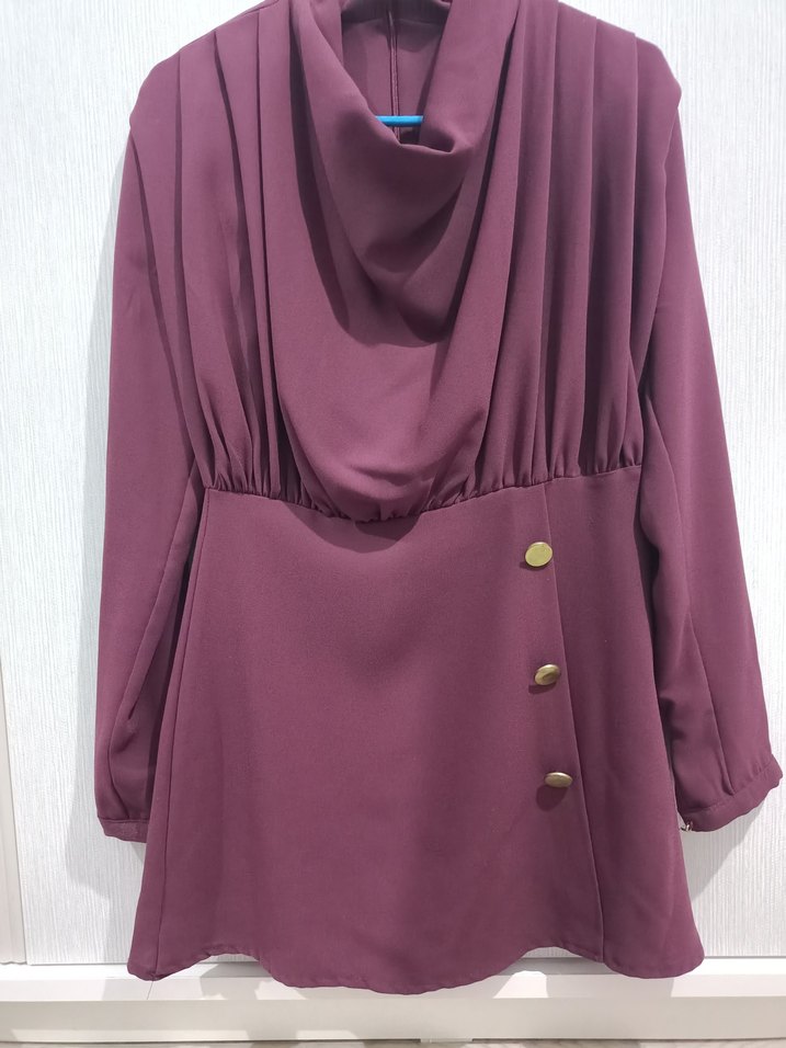 Mürdüm renginde ikili takım pantolon ve üstten oluşmaktadır. 38 beden. 1 kere kullandım.Yüksek yakalı ve bol kesimdir. Satenimsi parlak kumaştan yapılmıştır, minimalist ve çağdaş tarzı özel günler için uygundur.
