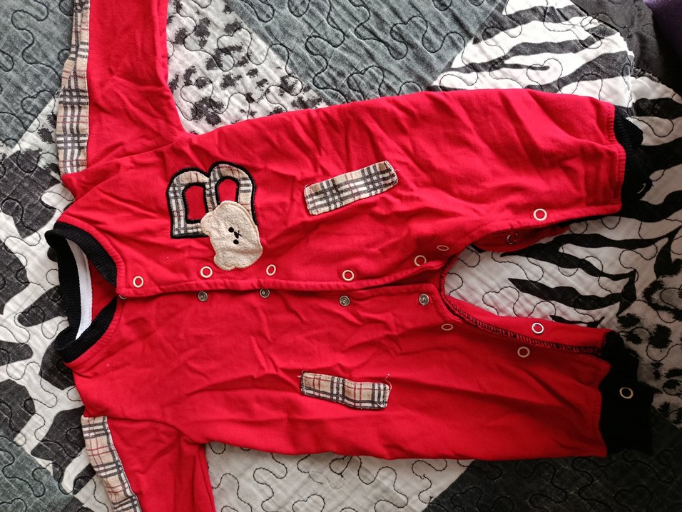 Düğmeli kapamalı ve nakış detaylı, yumuşak ve sıcak kırmızı bebek tulumu. Sokak stiline uygun, renkli tasarım. 2kere kullandık çok iyi durumda