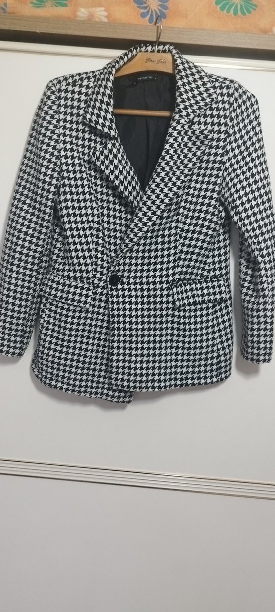 Düğmeli ve normal boyda olan bu kadın blazer ceket, yaka detaylı ve uzun kolludur. Sentetik kumaştan yapılmış, gri kazayağı desenlidir ve ofis ile sokak tarzına uygundur.