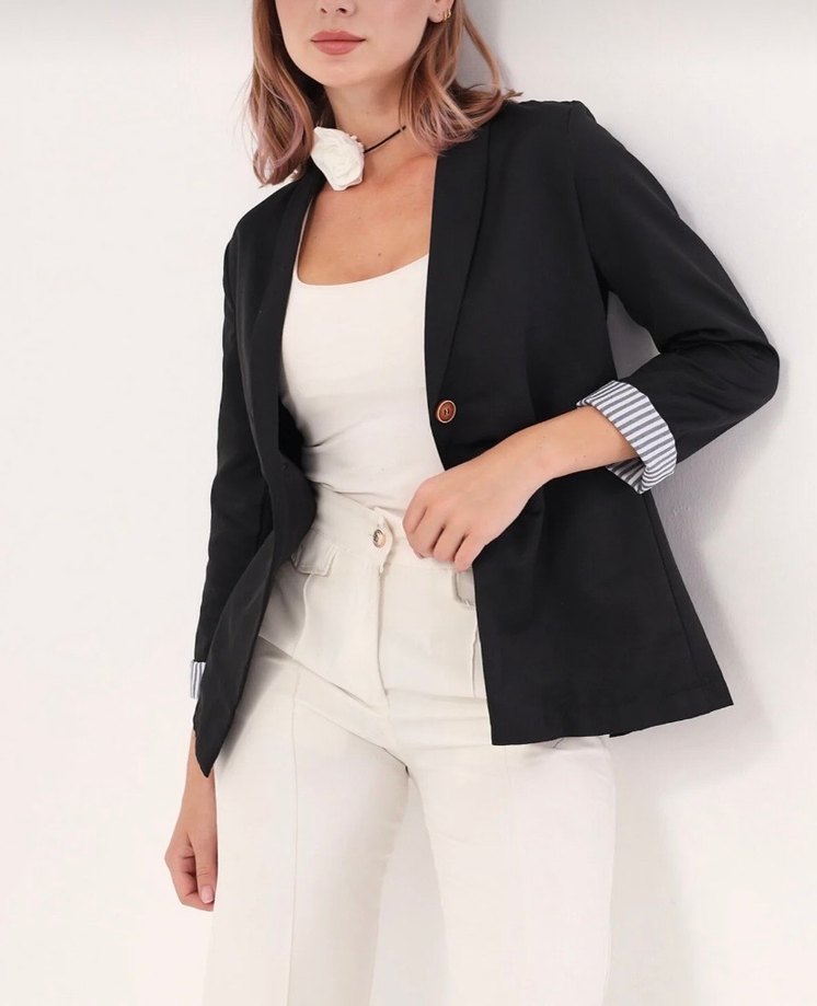 Düğmeli, Normal Boy Siyah Kadın Blazer